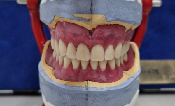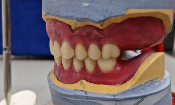 Eine an die Gegebenheiten des Mundes und die anatomischen Besonderheiten des Kieferknochens angepasste, stabil sitzende Prothese, die auf einem vollständig zahnlosen Kiefer angefertigt werden kann.